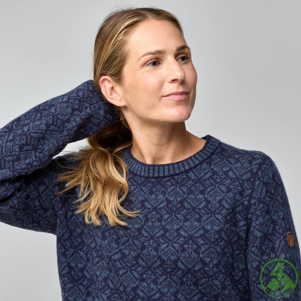 Fjällräven Snow Round Neck Sweater W – Skandináv mintás női gyapjú pulóver