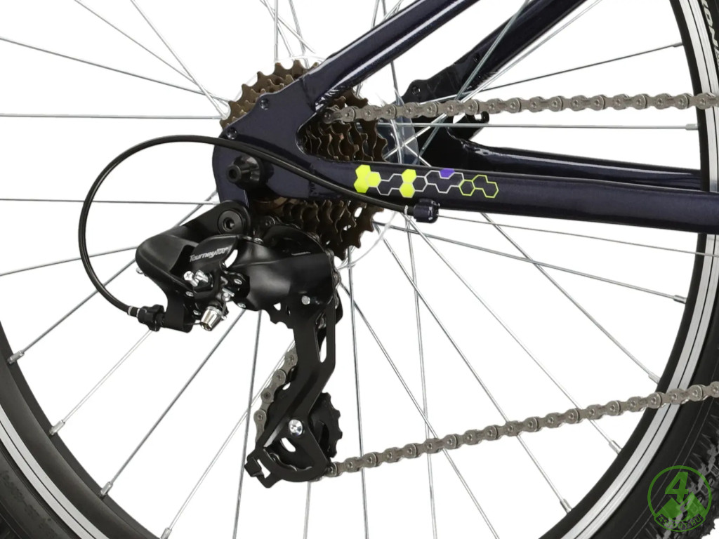 A Shimano Tourney (TZ500) váltórendszer 6 sebességes fokozata egyszerűen kezelhető, így a kezdő és hobbi bringások könnyen alkalmazkodhatnak bármely terephez. A V-fékek hatékony fékerőt biztosítanak minden helyzetben, így a szülők is nyugodtak lehetnek a gyerekek biztonságát illetően. A 20 colos kerekek kiváló tapadást és stabilitást nyújtanak, így a fiatalok magabiztosan vehetik az akadályokat.