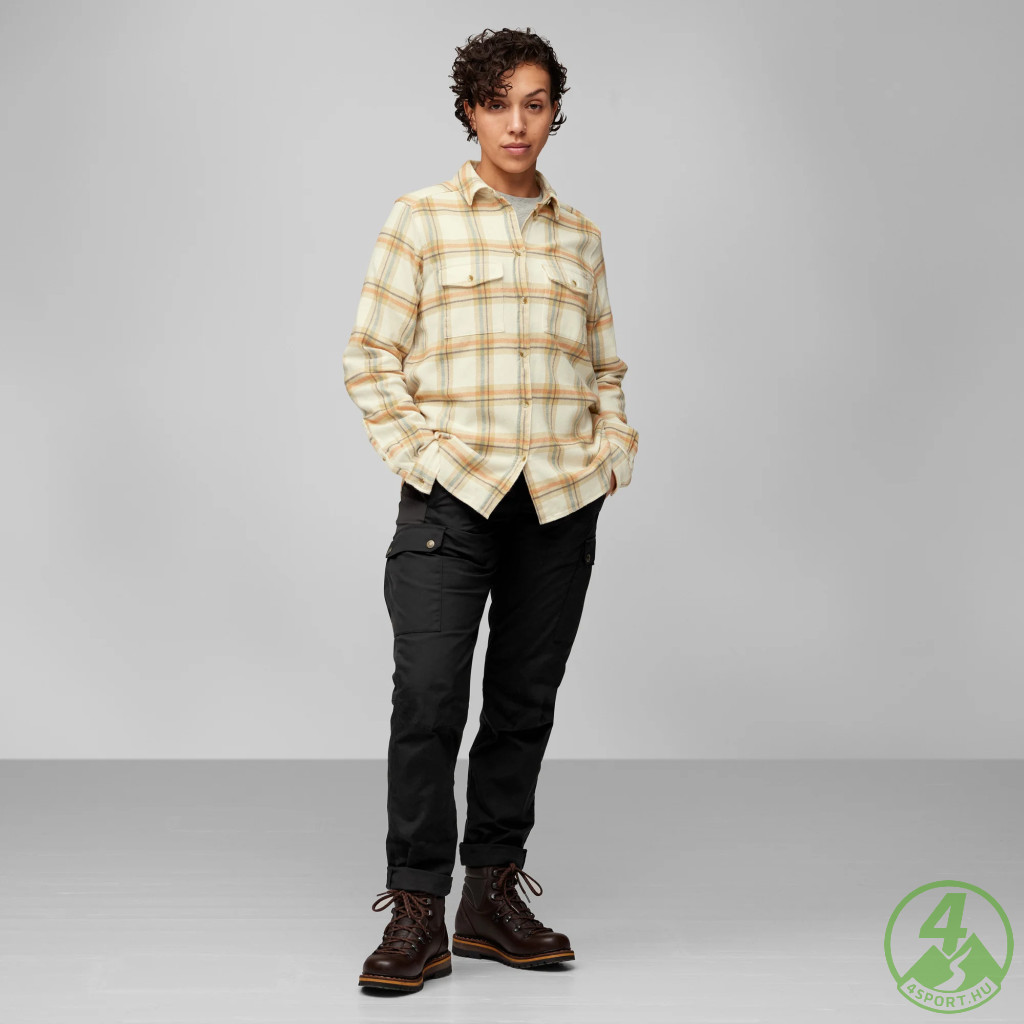 A Fjällräven Övik Heavy Flannel Shirt W egyedülálló választás azok számára, akik nem szeretnének kompromisszumot kötni a tartósság és a kényelem között. Ez a női flanel ing vastag, organikus pamut flanelből készül, amely puha tapintású, ugyanakkor kiváló hőtartó képességgel bír. A dupla szövésű anyag extra melegséget biztosít, így ideális választás őszi-téli túrákhoz, trekkinghez, könnyű hegymászáshoz, városi sétákhoz vagy utazáshoz. A klasszikus szabásvonal és az íves alsó szegély modern, nőies megjelenést kölcsönöz, miközben a gombos elülső rész és a gombos mellzsebek praktikus tárolást kínálnak.